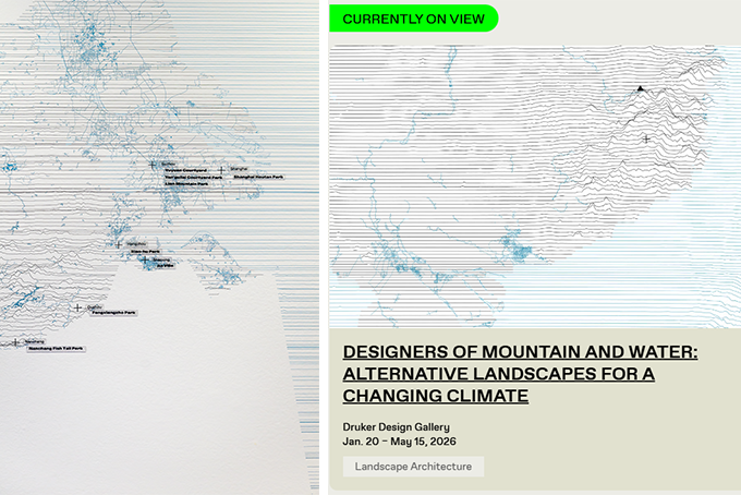Four projects by Z+T Studio—Fengxiangzhou Park, Yueyuan, Shanshuijian, and Xiaohu Park—are featured in the exhibition Designers of Mountain and Water at the Druker Design Gallery, Harvard Graduate School of Design. The exhibition highlights contemporary landscape architecture's modern interpretation of Eastern mountain-and-water aesthetics.